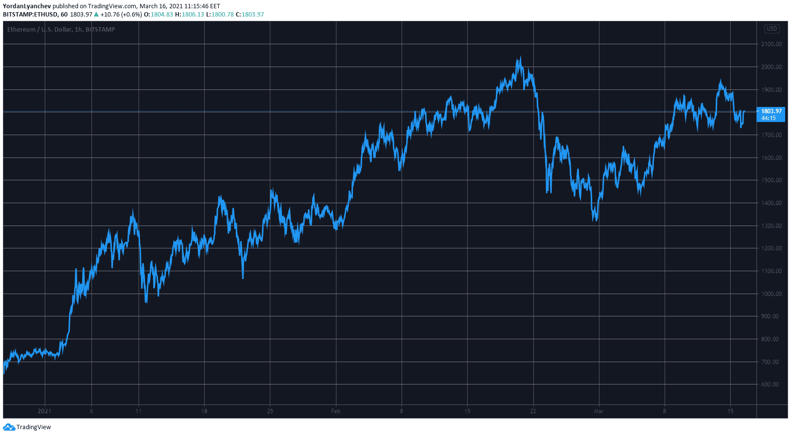 Ethereum đã phá vỡ nhiều cột mốc quan trọng kể từ đó. Nó bắt đầu bằng cách vượt qua 1.000 đô la vào đầu tháng 1, tạo ra mức cao nhất mọi thời đại mới trên 1.450 đô la, chinh phục 2.000 đô la vào tháng 2 và thiết lập kỷ lục mới ở mức 2.050 đô la.