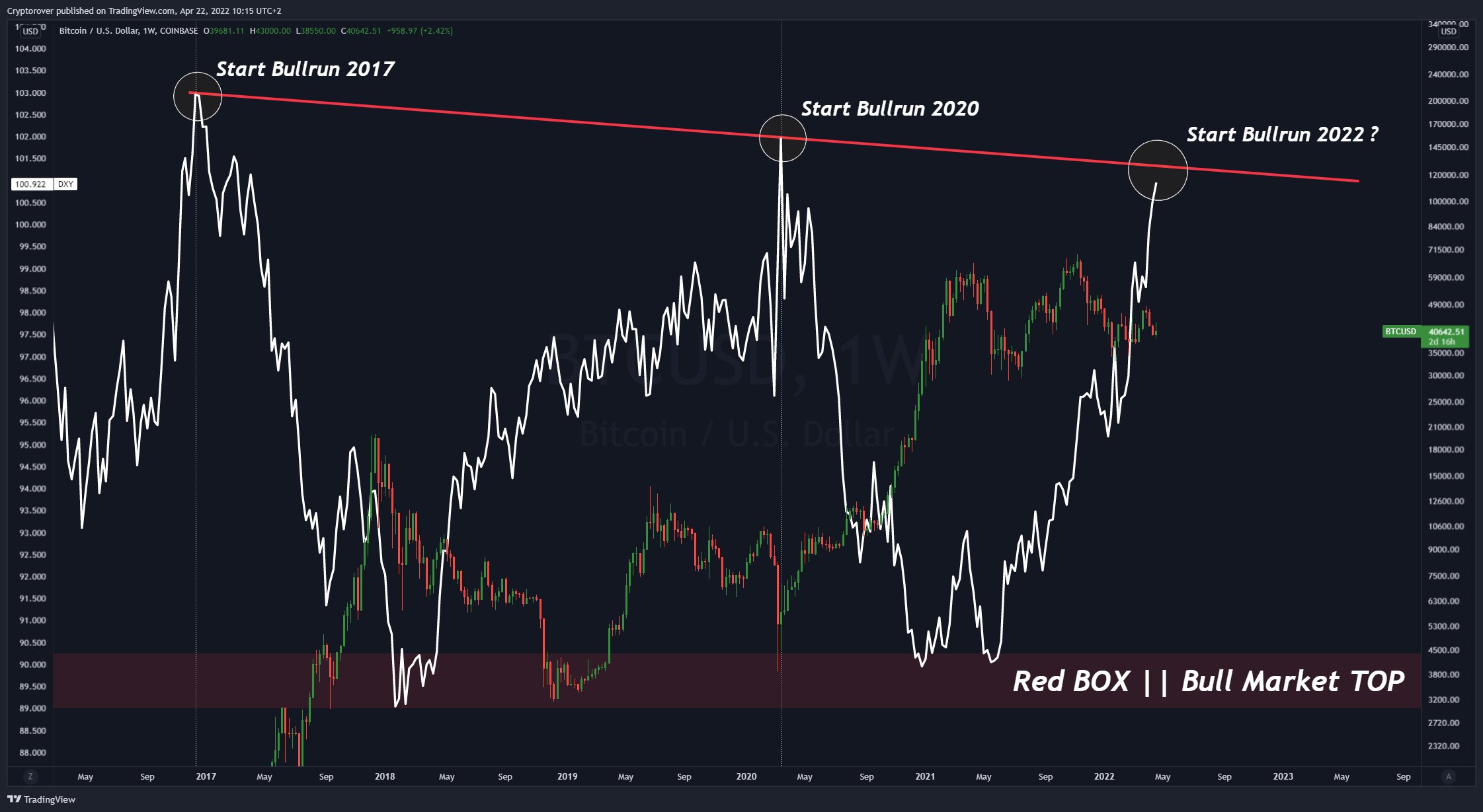 Chỉ số tiền tệ đô la Mỹ (DXY) hiện đang ở gần mức cao nhất trong hai năm và sự đảo chiều trong lịch sử đã tạo cho Bitcoin động lực để phá vỡ các xu hướng giảm dài hạn.