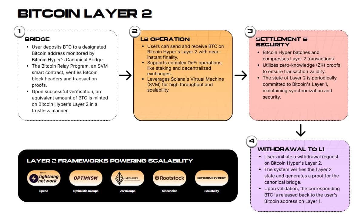 Bitcoin Hyper là một giải pháp Layer-2, nghĩa là nó được xây dựng trên blockchain Layer-1 của Bitcoin. Giống như các L2 khác, giao dịch sẽ được xử lý off-chain.