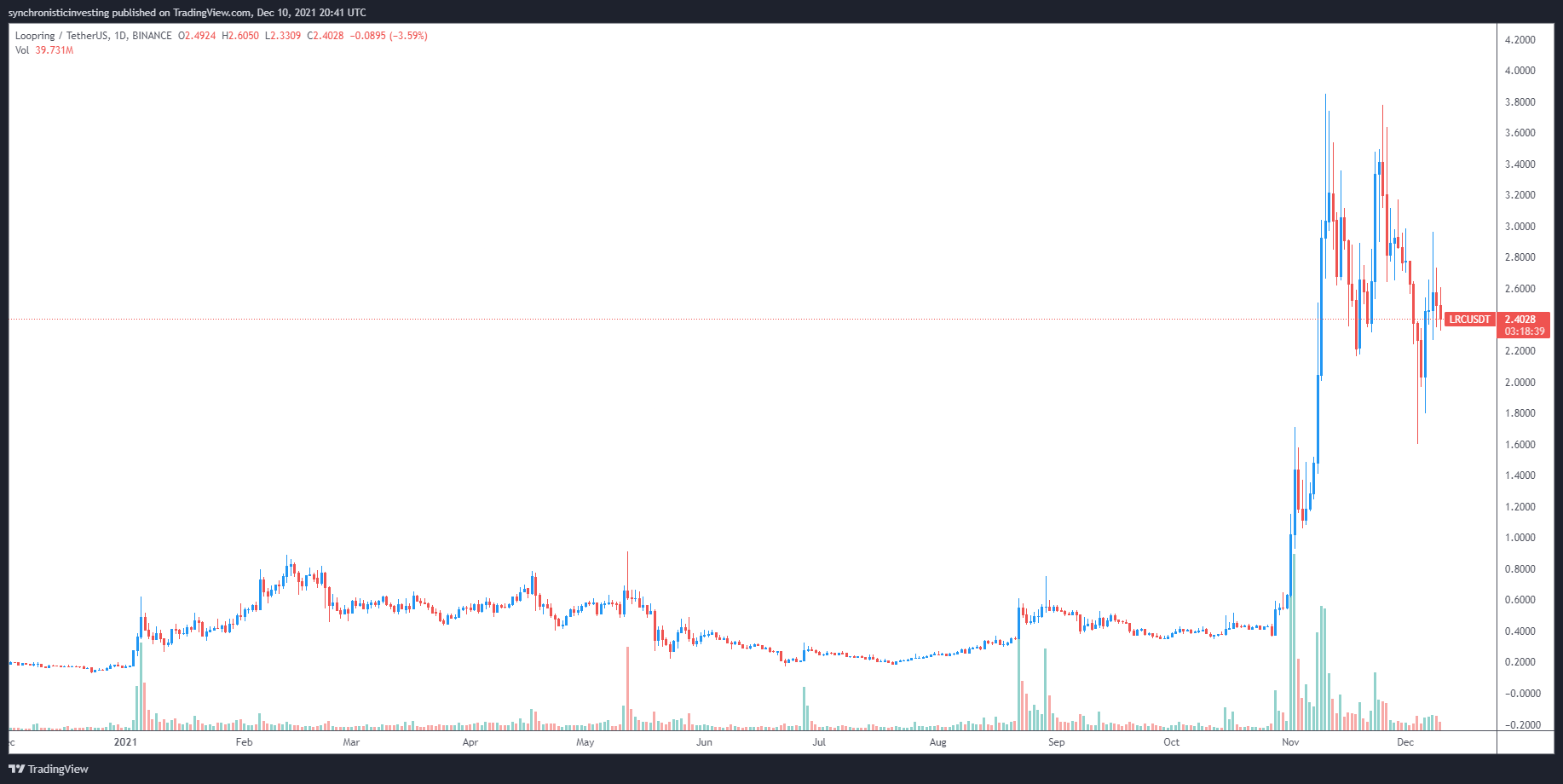 Loopring (LRC) là một giao thức khác đã sử dụng ZK-rollups để giảm chi phí giao dịch và tăng tốc khả năng thông lượng của nó, điều này đã giúp đẩy giá của LRC lên mức cao nhất mọi thời đại là 3,83 USD vào đầu tháng 11.